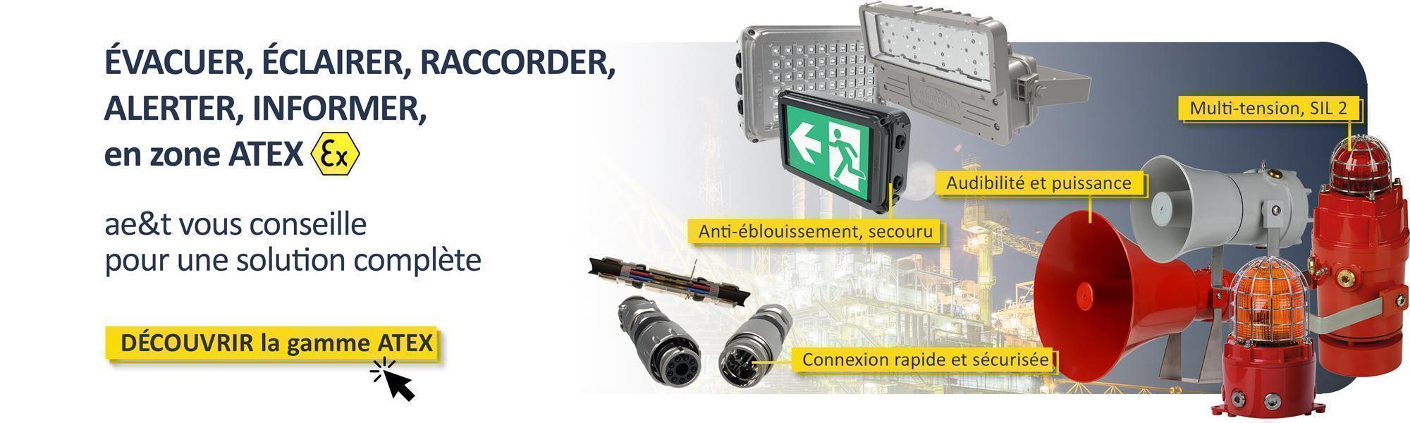 Découvrez nos sirènes d’alerte, sirènes incendie, avertisseurs optiques, téléphones, presse-étoupes, luminaires, amortisseurs de chocs...pour industrie, ERP et zones ATEX