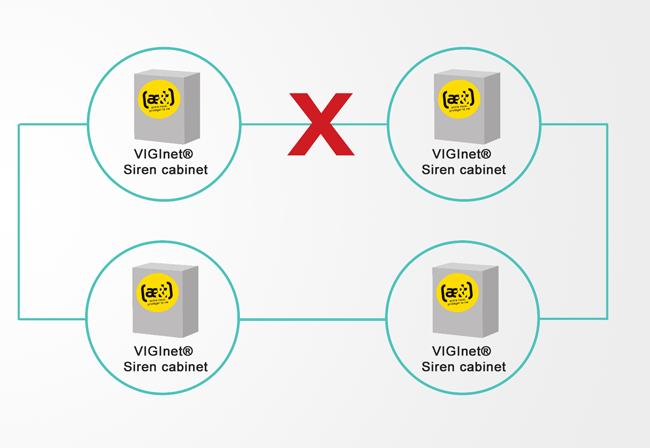 Depending on the configuration of the site to be secured and the required sound output power, several VIGInet® units can be interconnected
